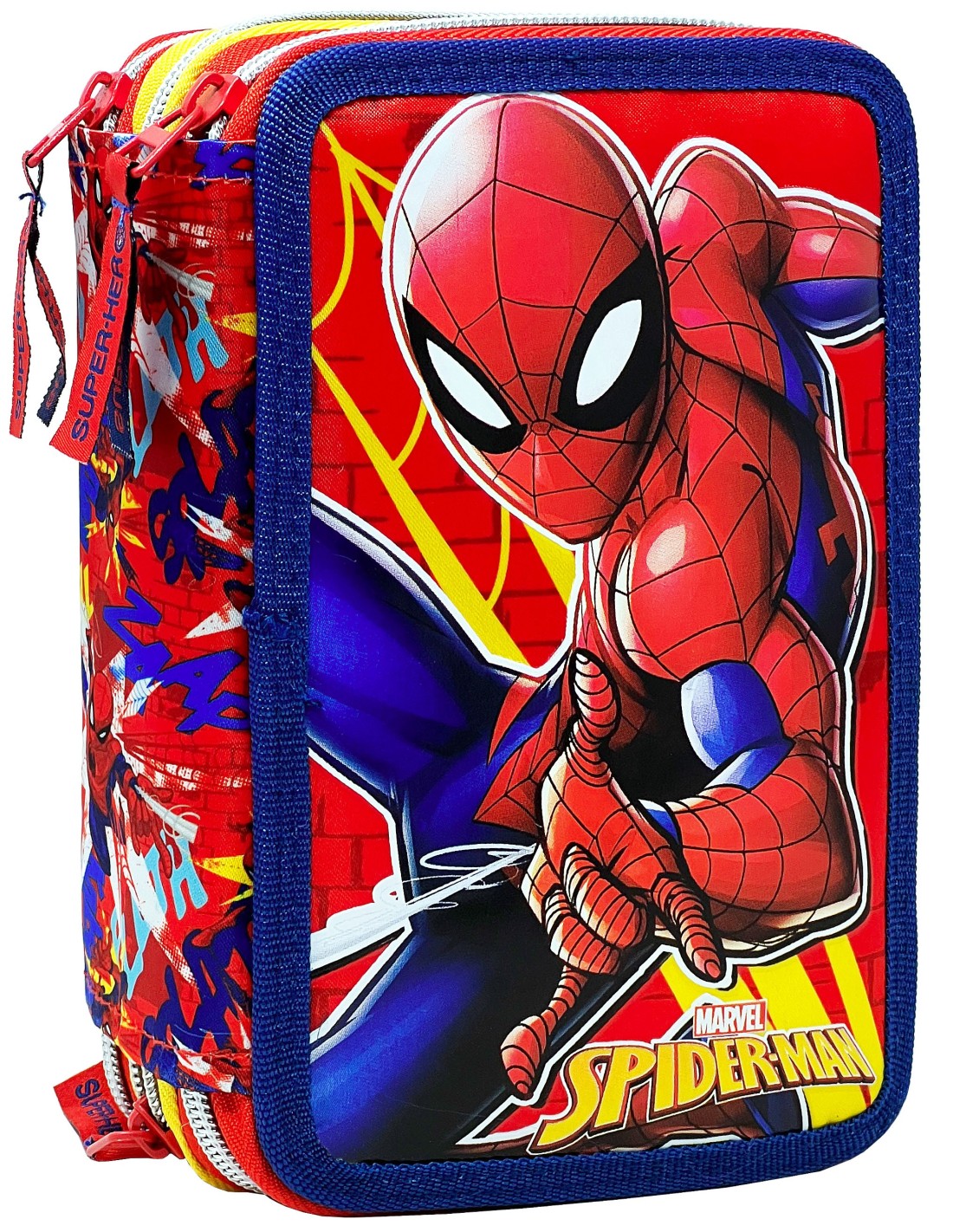 Marvel Spider-Man - Astuccio triplo riempito per bambini, per la Scuola o tempo libero, 44 Accessori scuola