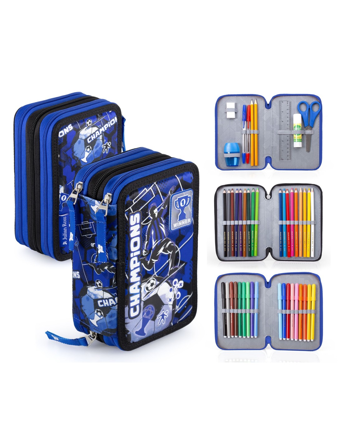Julian Ross Champions Neroazzurro - Astuccio 3 scomparti per la Scuola o il Tempo Libero