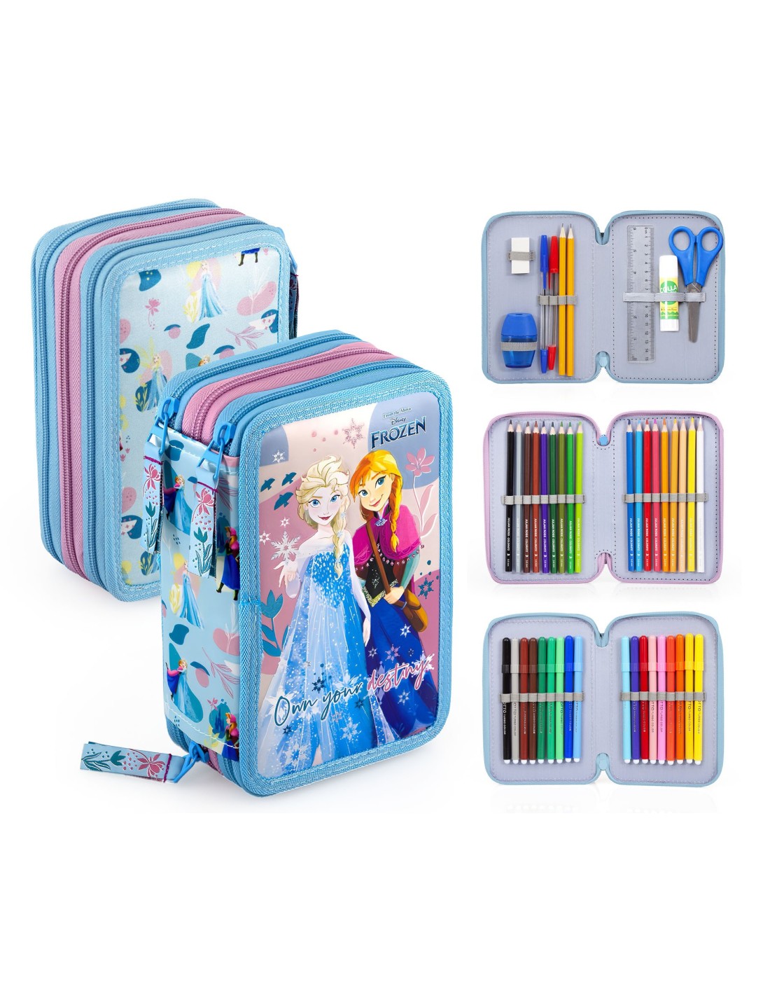 Astuccio triplo riempito 45 pezzi Frozen.