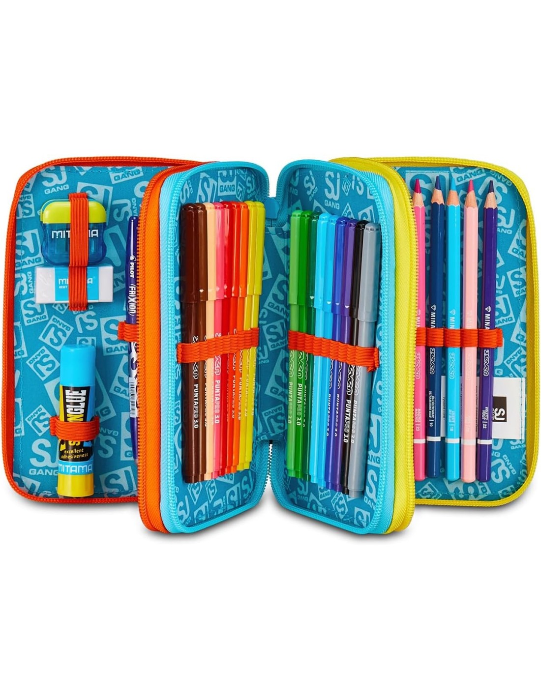 - Perfetto per accompagnare le giornate scolastiche dei bambini, questo astuccio a triplo scomparto è la soluzione ideale per organizzare al meglio tutto l'occorrente. Con il suo design colorato, è pensato per bambini della scuola elementare. Realizzato in resistente tessuto di poliestere, questo astuccio unisce praticità e qualità, perfetto da abbinare a qualsiasi zaino scolastico.