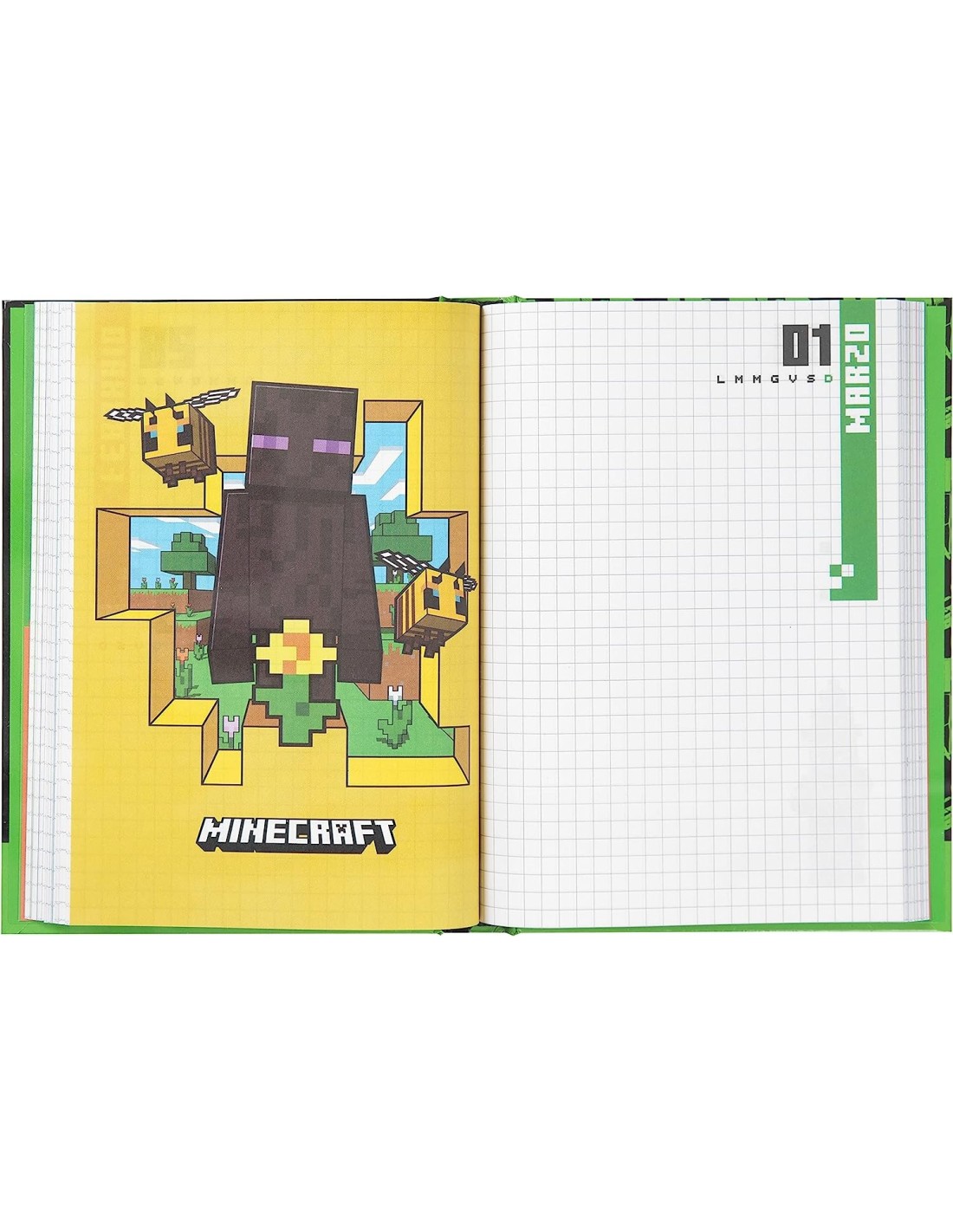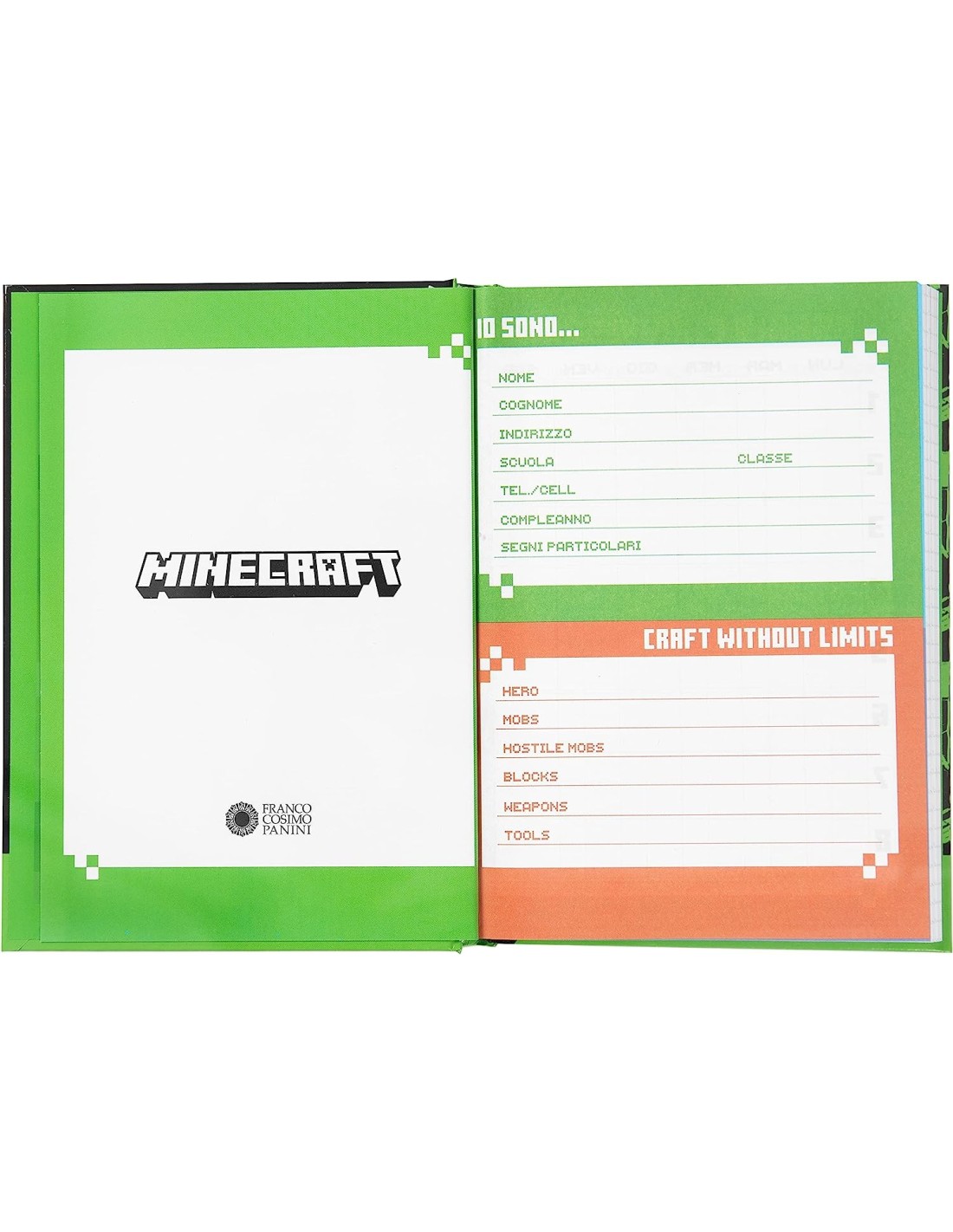 - PERFETTO PER IL TUO BACK TO SCHOOL: Diario scuola formato standard 12 mesi, dal 1° settembre 2023 al 31 agosto 2024. Personalizzato Minecraft, con copertina verde imbottita, 320 pagine interne stampate a colori e dimensioni di 13x17,8H cm. Prodotto perfetto per il tuo back to school, con tanto spazio a disposizione per scrivere e disegnare!