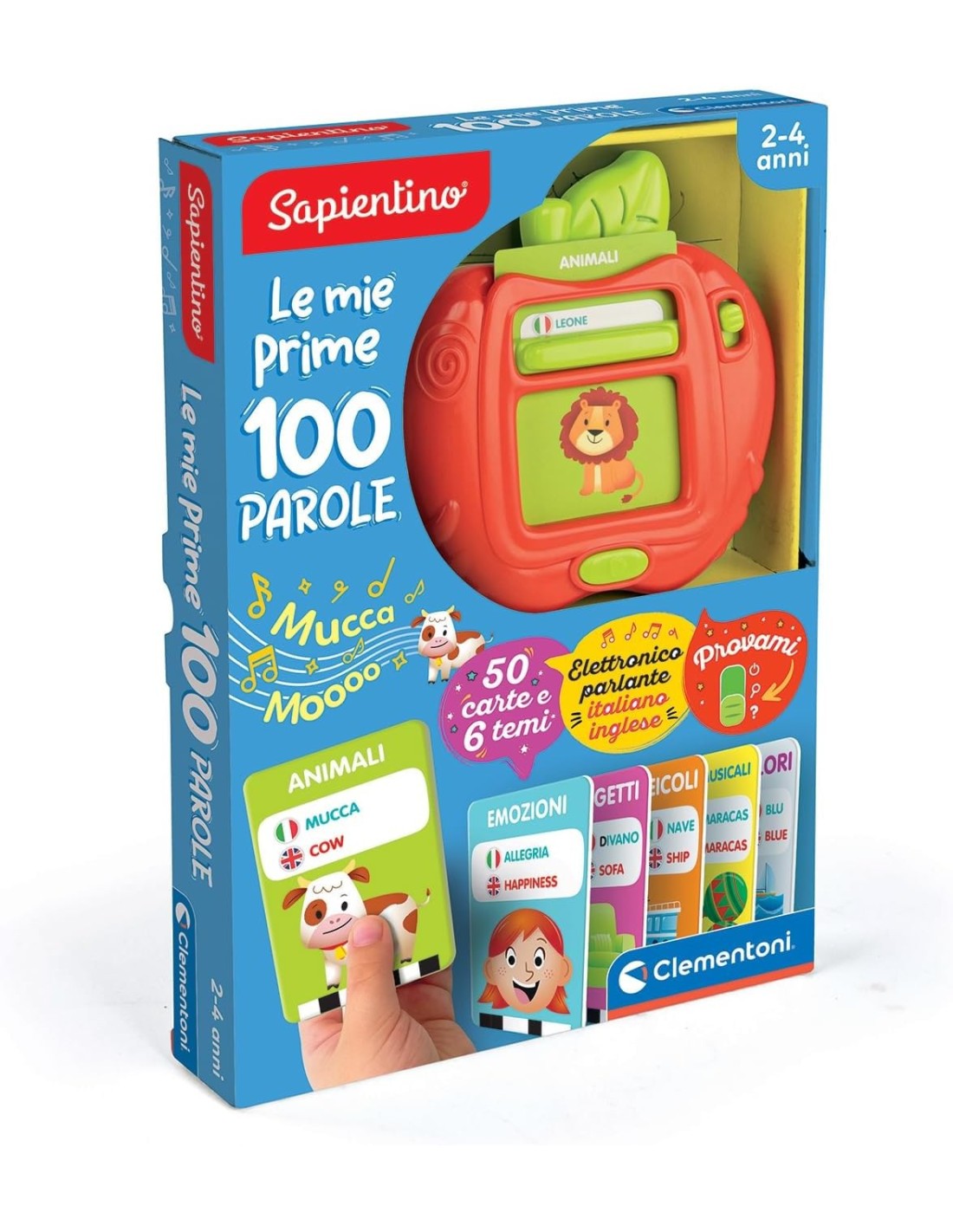 - LE MIE PRIME 100 PAROLE: una console educativa parlante, con 50 flashcards per insegnare ai bambini 100 nuove parole in italiano e in inglese su 6 diversi temi, attraverso due modalità di gioco divertenti e coinvolgenti