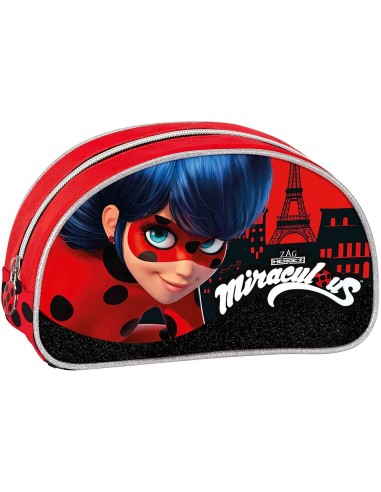 Miraculous Ladybug - Astuccio beauty case, mezzaluna con zip, 22cm