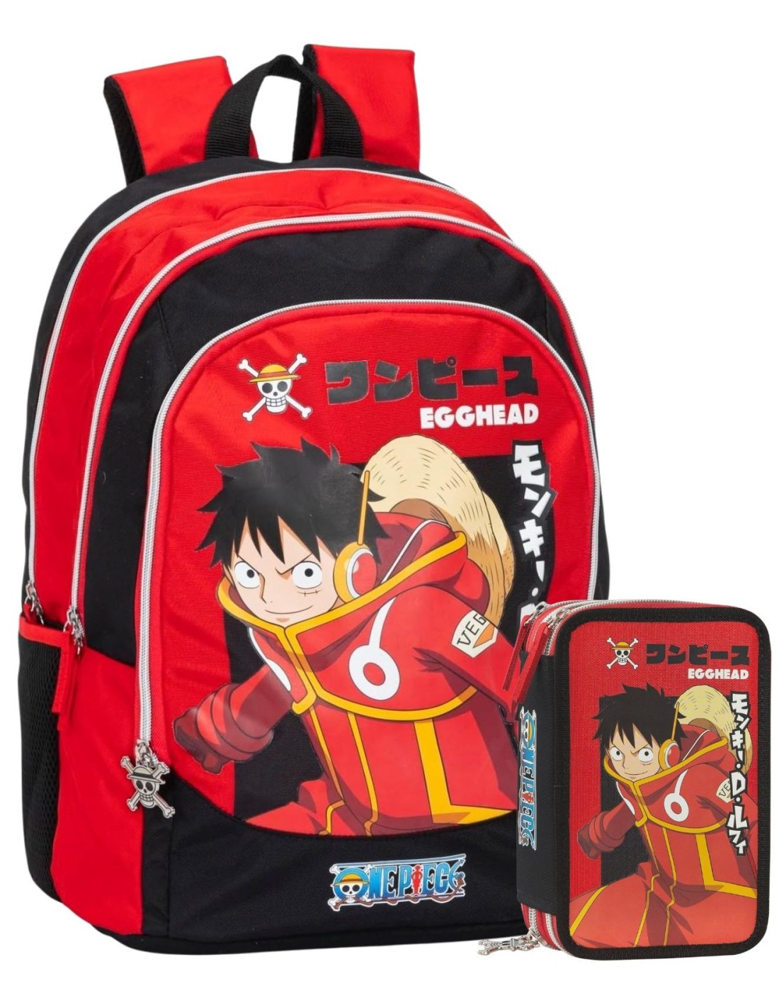 One Piece - School pack Zaino organizzato per scuola elementare + Astuccio 3 scomparti riempito