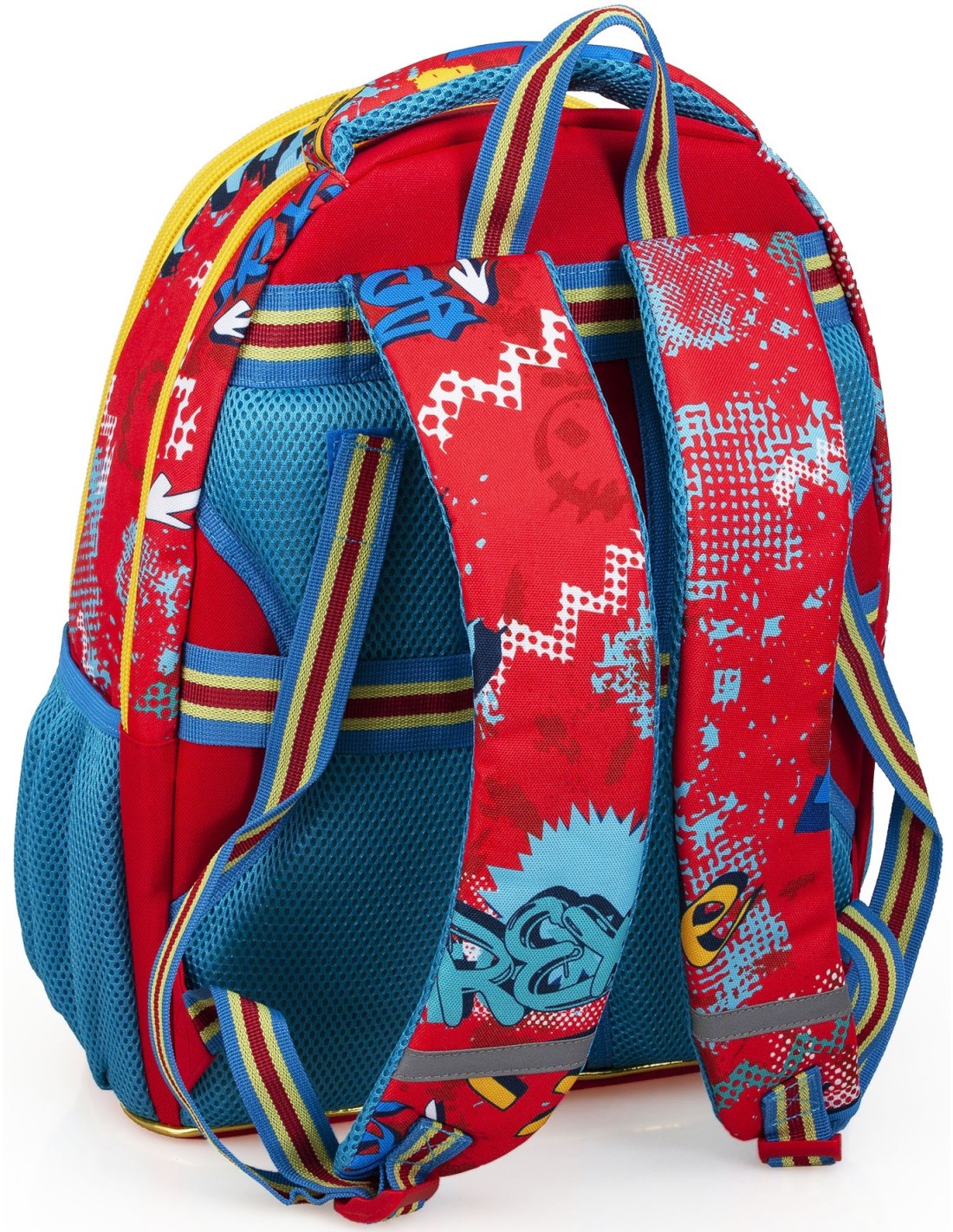 Schienale imbottito, spallacci regolabili e imbottiti, maniglia per il trasporto.